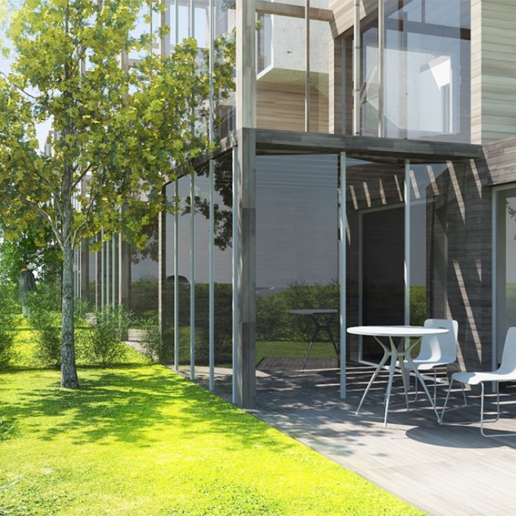 Ces espaces créent d’énorme apport de lumière dans le logement tout au long de la journée, ce qui implique moins de consommation de lumière artificielle et un confort visuel maximum. Ces espaces sont ouvrables sur de larges jardins et toitures végétalisées au sud.