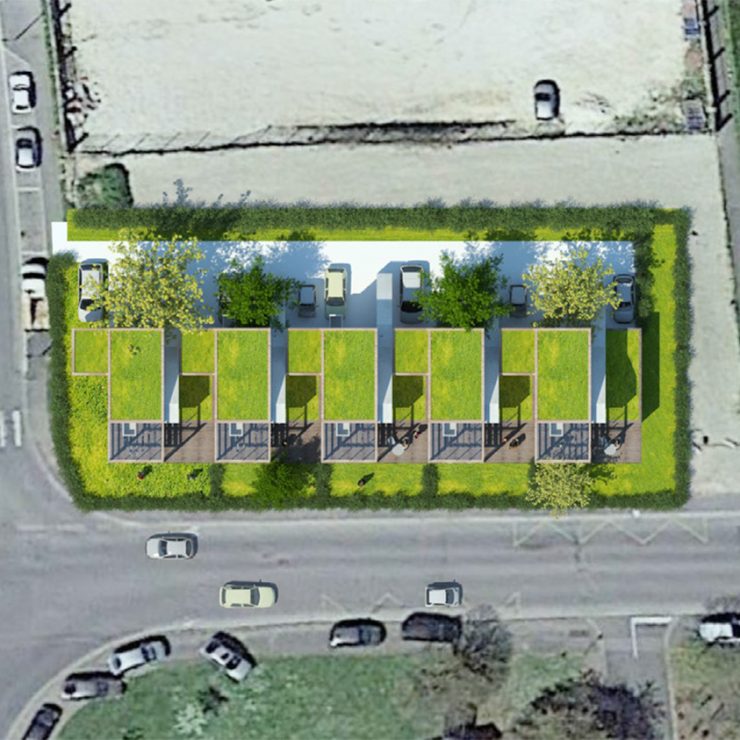 Le rez-de-chaussée propose 5 logements orientés nord-sud donnant sur un jardin au sud. A l’étage se déploient 5 duplex.