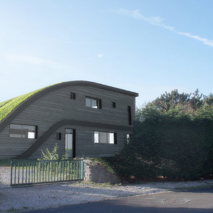 Les volumes de la maison de développe donc vers le sud-ouest en proposant deux hauteurs de volume ( 3m et 7 m) ce qui créer donc une terrasse végétalisée pour la toiture du premier niveau.