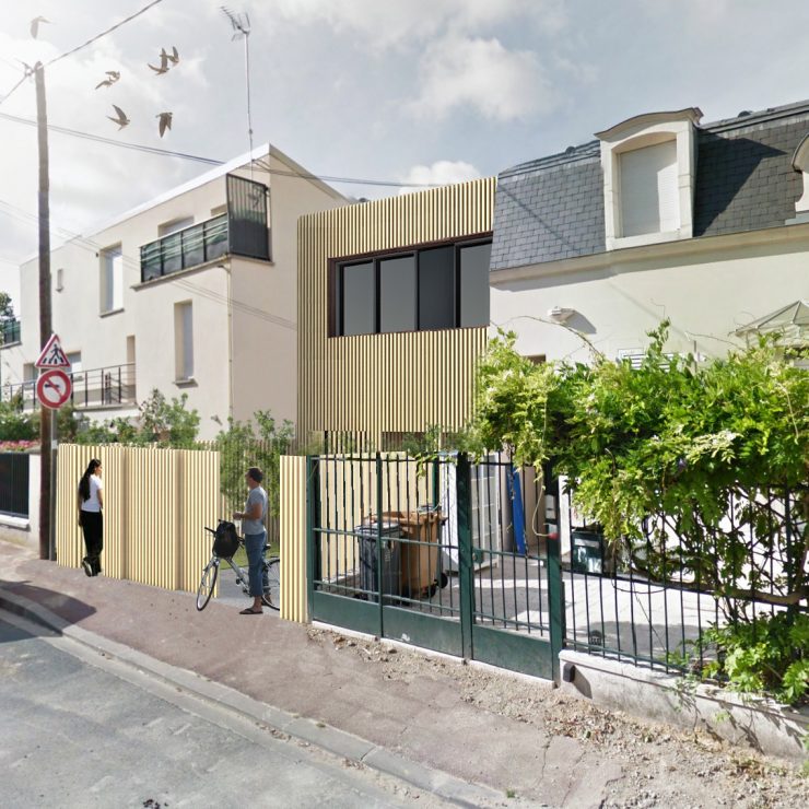 Un recul des limites séparatives pour ce volume sur patio est de 3.00m. Les autres façades sont aveugles sur les limites séparatives sur lesquelles elles s’adossent.